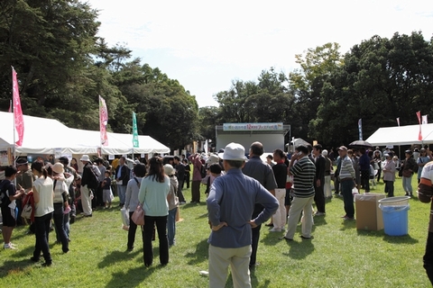 イベント会場(芝生広場)。多くの方に町村の観光情報をご覧いただきました。